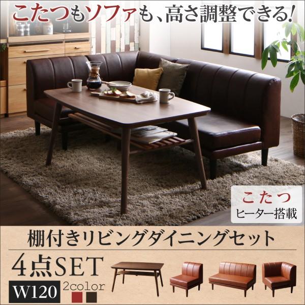こたつ ソファ セット ダイニング 高さ調節 棚付き ダイニングセット