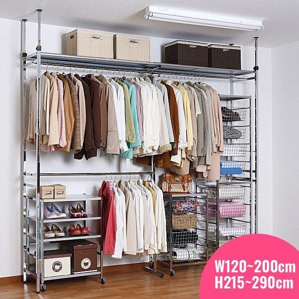 楽天市場 天井突っ張り式 ハンガーラック 2段 幅伸縮式 最大幅166cm