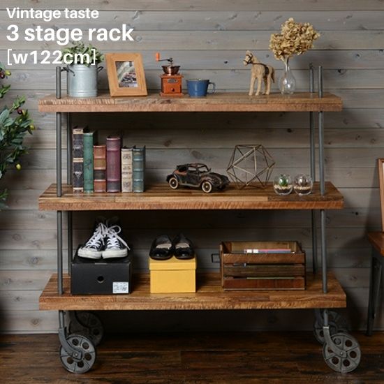 ウッド アイアン ラック 幅120 キャスター付き 木製 アイアン 棚