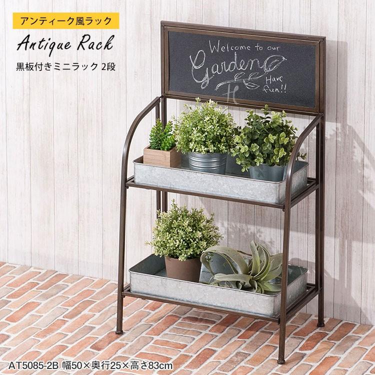 激安 アンティーク風家具 ミニラック 2段 黒板付き ラック ガーデニング 棚 カフェ風 玄関 防錆加工 防サビ 幅40 奥行30