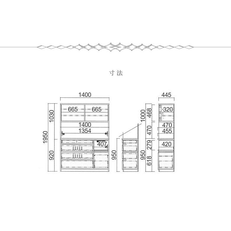 パモウナ 食器棚 Sy S1400r キッチンボード 幅140 奥行45cm 高さ198cm