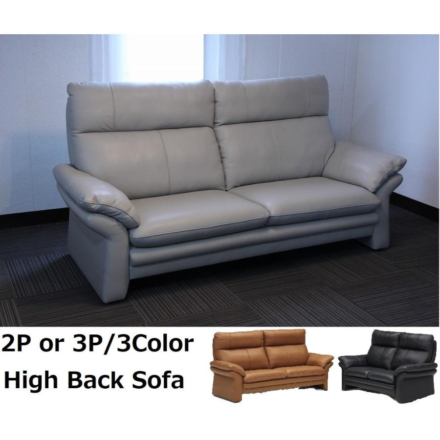 ソファ 3p 2p 2人がけ 3人がけ 本革 皮 レザー ハイバック グレー
