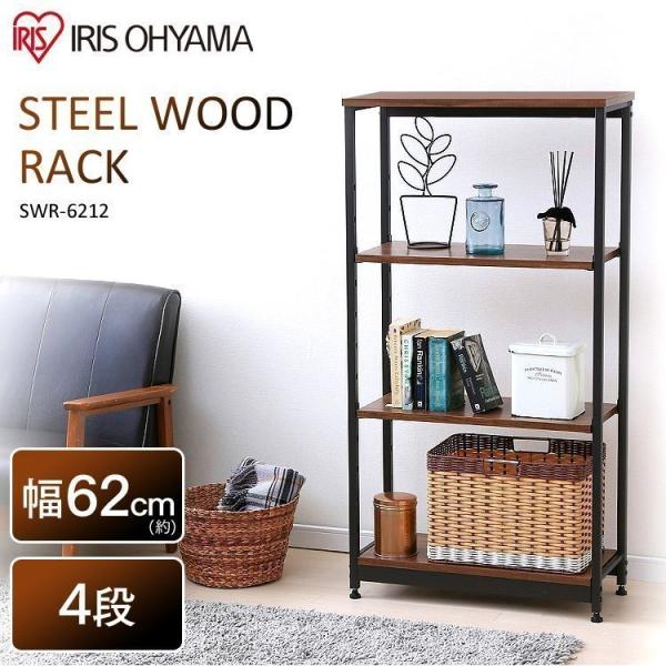 スチールウッドラック 幅62cm 4段 ブラウン Swr 6212 アイリスオーヤマ