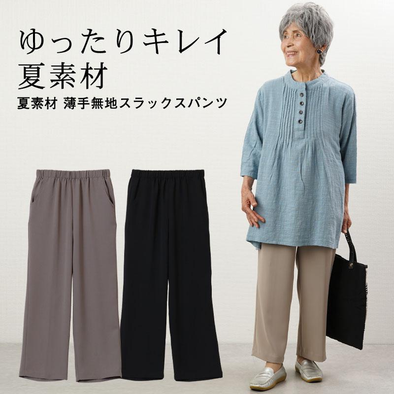 高齢者 ズボン 女性 夏素材 薄手無地スラックスパンツ シニア 服 70代