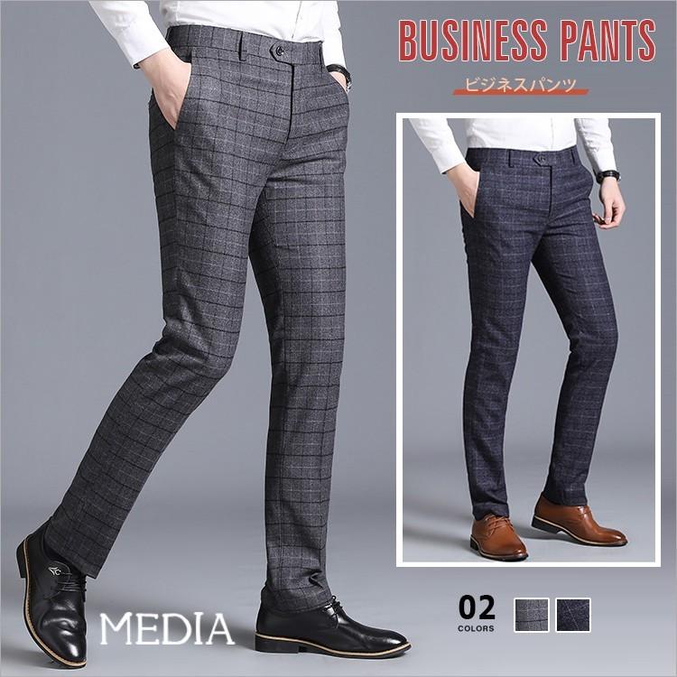 スラックス パンツ メンズ チェック柄 ビジネスパンツ 送料無料 ロング