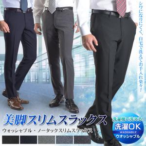 スラックス ビジネス パンツ メンズ ノータック ストレッチ 洗える
