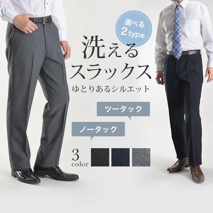 スラックス メンズ 送料無料 ツータック ノータック 2タック ビジネス