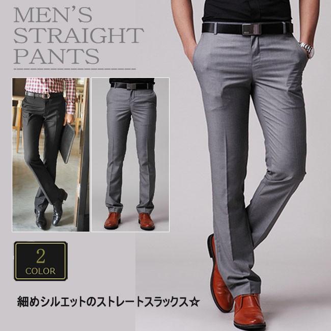 楽天市場 あす楽対応 スリム スラックス メンズ ノータック