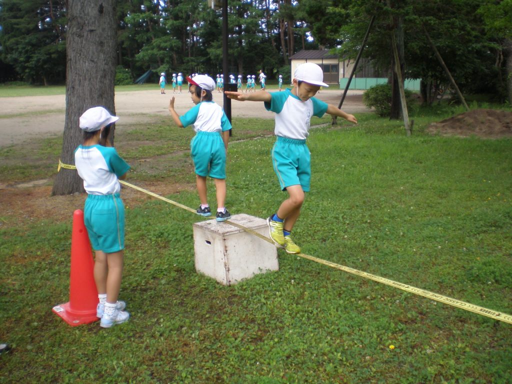 スラックラインで体幹トレーニング 緑小学校ホームページ