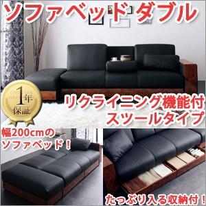 ソファーベッド ダブル リクライニング機能付 スツールタイプ ブラック