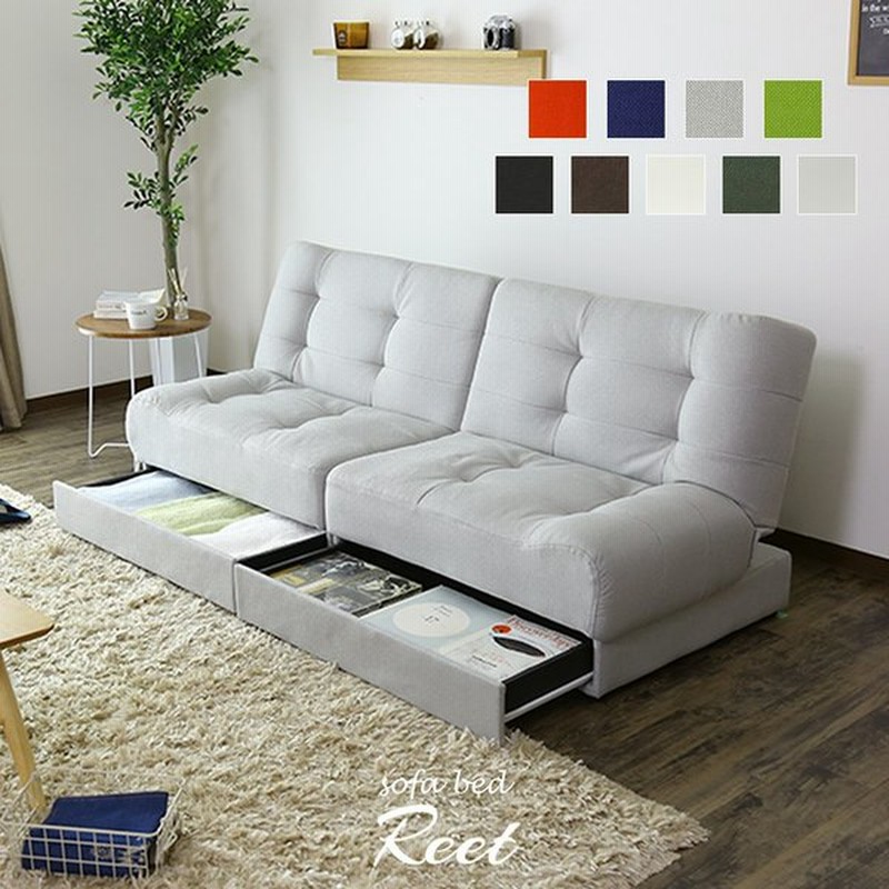 幅110 160cm 大容量収納付き ソファベッド ファブリック タンスの