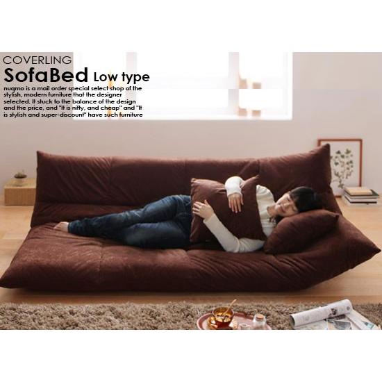 ブラウン うたた寝できるカバーリングフロアソファベッド ロータイプ
