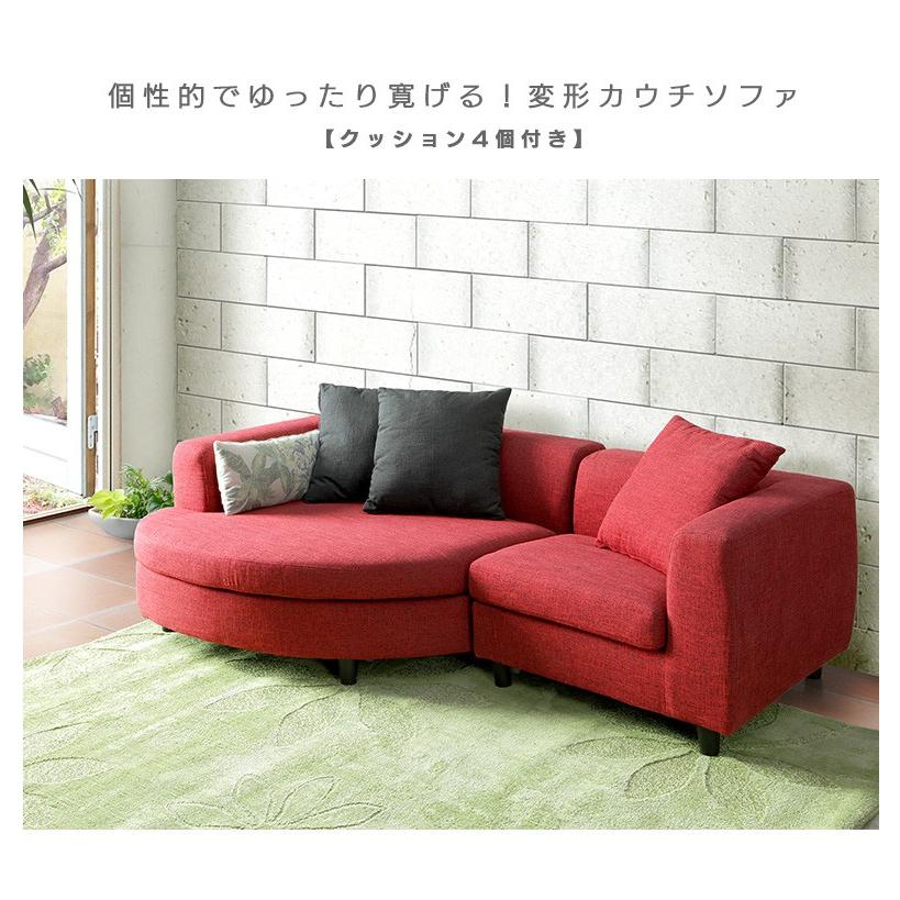 ソファ カウチソファ ソファー 3人掛け カウチ おしゃれ 変形 3人掛けソファ 3p 幅230cm ファブリック カウチ ソファー クッション 4コ付 レッド ブラック Uk 047 Y M Style
