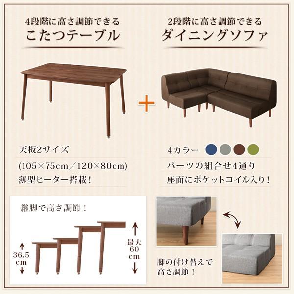 3人用 ダイニングこたつセット 4点 こたつテーブル幅105cm 2人掛けソファ 1脚 1人掛けソファ 1脚 コーナーソファ 1脚 高