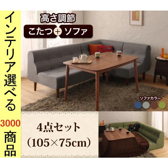 こたつセット テーブル ソファ 105 75 60cm 高さ4段階調節可