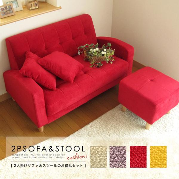 ソファ 2人掛け 北欧 おしゃれ オットマン付き クッション付き