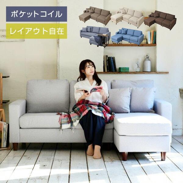 カウチソファ 3人掛け ソファ カウチ ダイニング ポケットコイル
