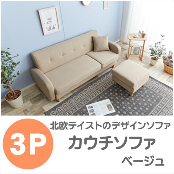 カウチソファ 3人掛け ベージュ スツールソファ ローソファ リビング