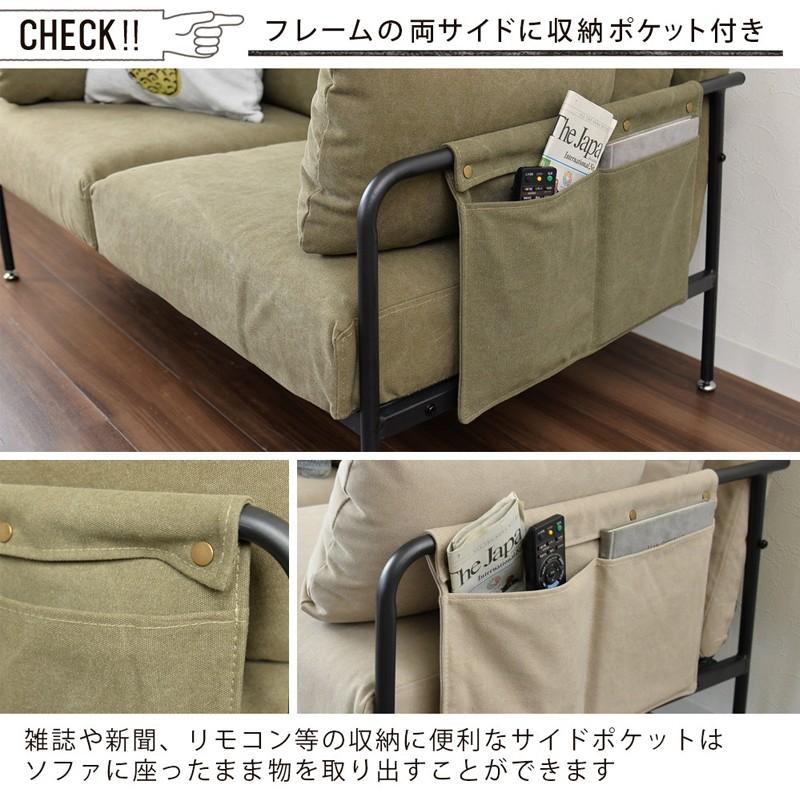 ソファ カーキ ベージュ ソファー サイドポケット付き 2p 2人掛け