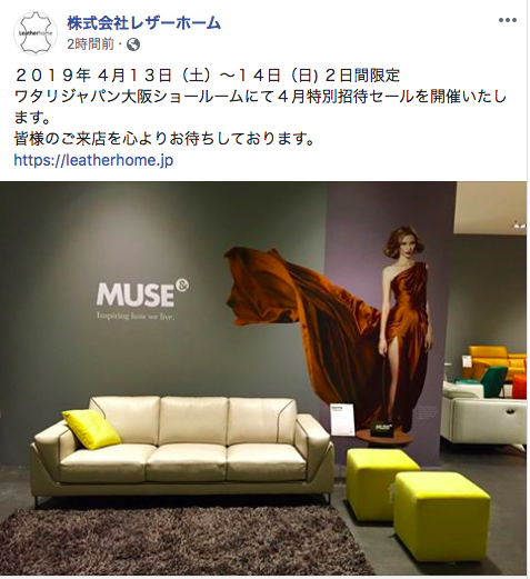 Facebookページに明日から開催しますワタリジャパンソファ4月大阪