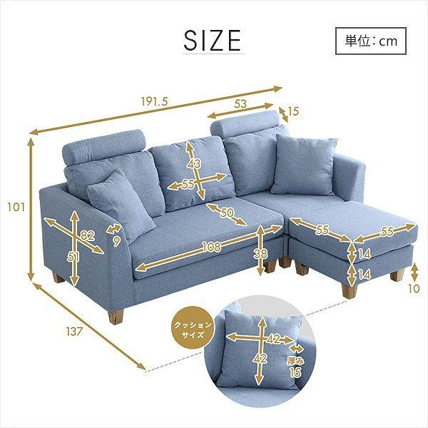 ソファー 3人用 L字ソファ ヘッドレスト クッション各2個付き おしゃれ