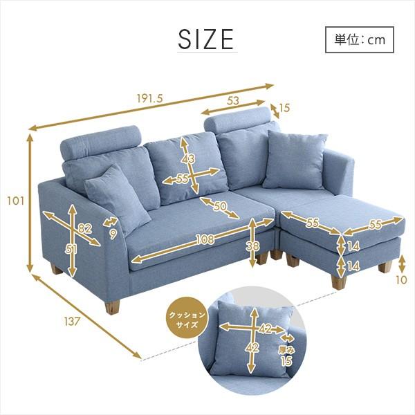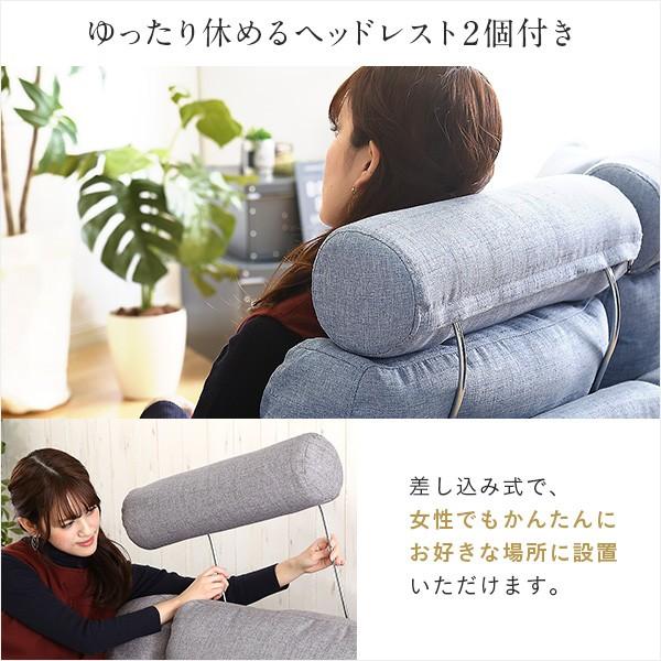 3人掛けカウチソファ 布地 6色展開 ヘッドレスト クッション各2個