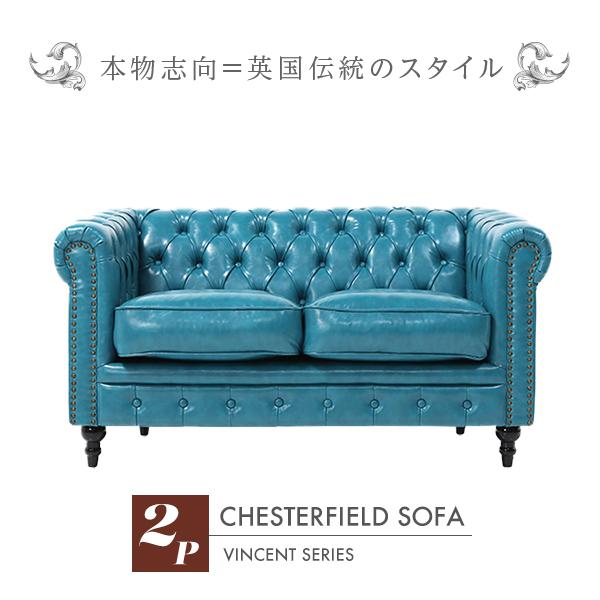 輸入家具 デザイナーズ チェスターフィールド 2シーター ソファ ターコイズブルー Puレザー Vincent Vc2p49k Vc2p49k キングスクロス 通販 Yahoo ショッピング