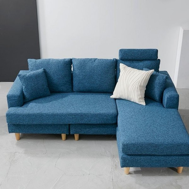 3人掛けカウチソファ 左右対応オットマン付きのファブリックソファ