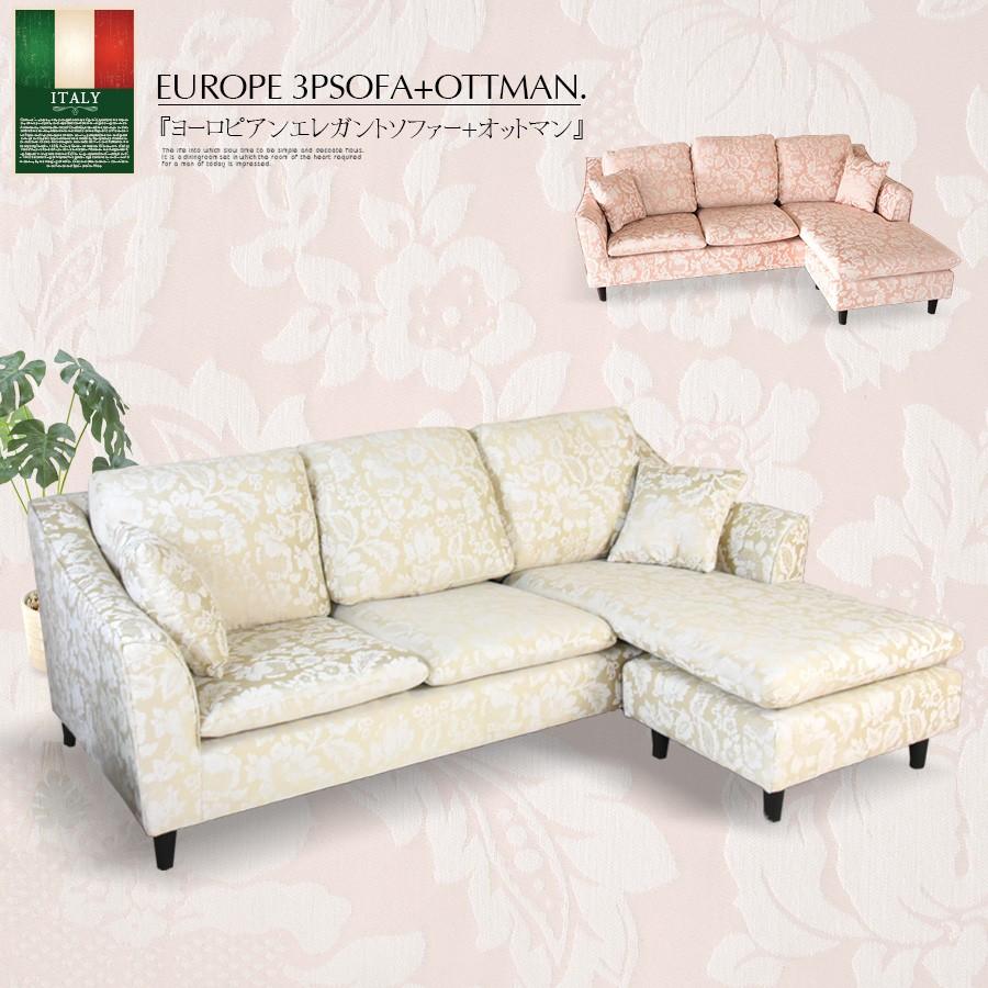 カウチソファ 3p ファブリックレザー フロアソファ リビングソファ