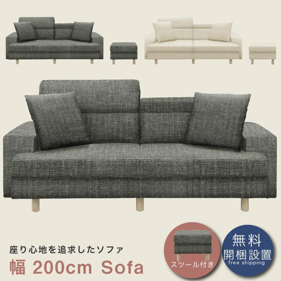 スツール付きソファ 200ソファ 幅200cm 二人掛けソファ 三人掛けソファ