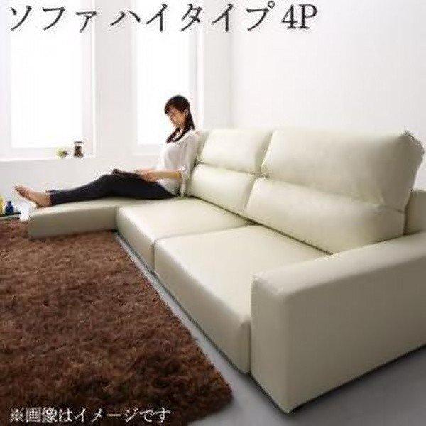 ローソファー 4人掛け 合皮レザー 4p ハイタイプ 500034078 棚