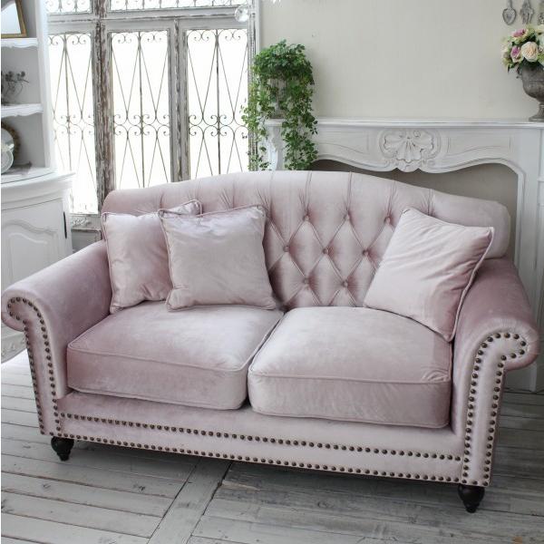 アンティークなフレンチスタイルソファー 2人掛け ベロアピンク 2p