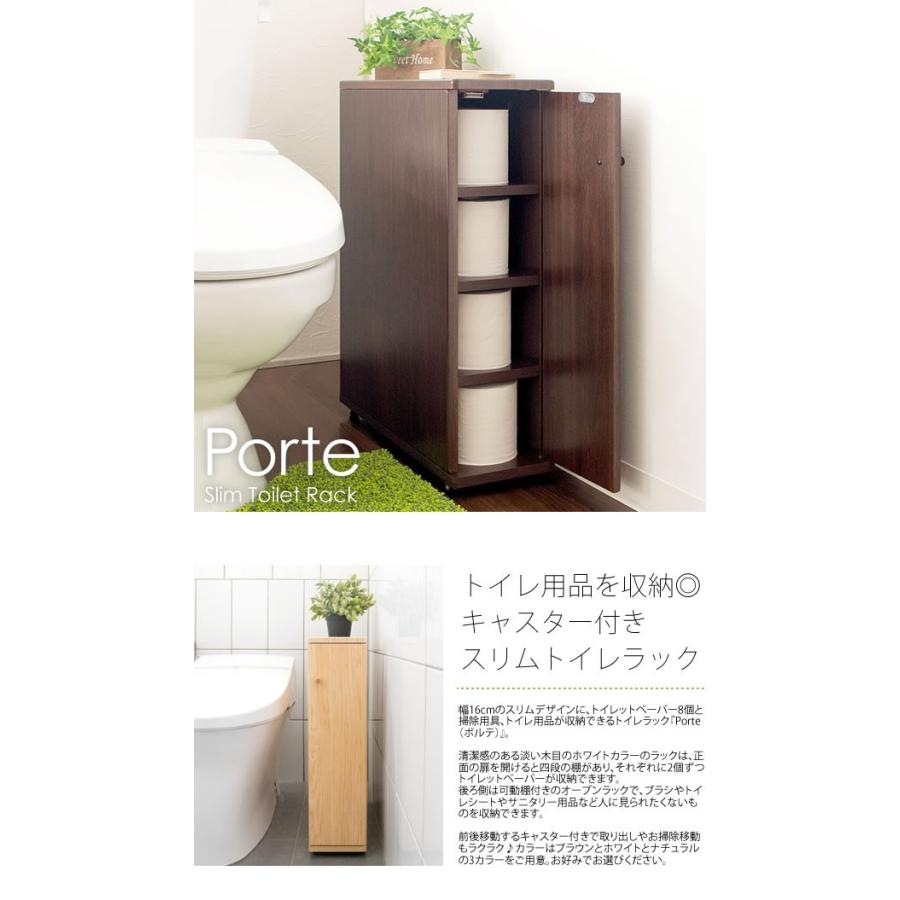 スリムトイレラック トイレットペーパー収納 木製 ブラウン ナチュラル