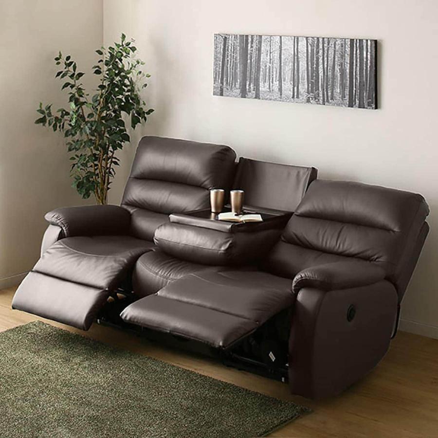 3人用電動本革テーブル付きリクライニングソファ ビリーバー3 Dbr 革