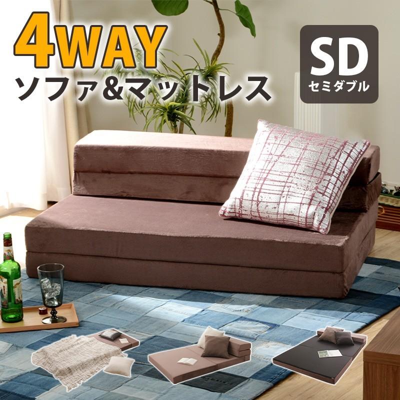 ソファーベッド ソファ ソファー 2人掛け ソファベッド セミダブル ローソファ 折りたたみ ソファマットレス 4way A841 Sd