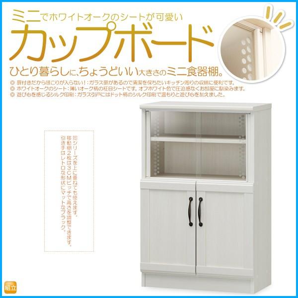ミニカップボード ミニ食器棚 キッチン収納 ホワイト 白木目シート