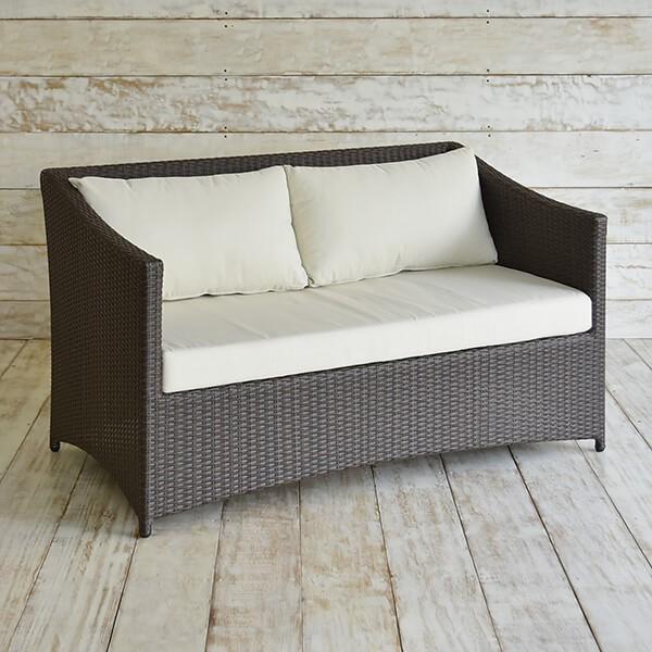 ニ人掛けソファ クッション付籐ラタン風ガーデンソファー業務用 Rhodes