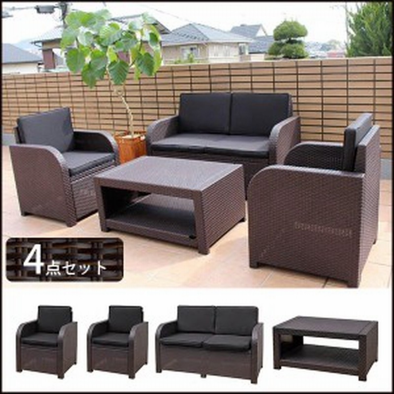 楽天市場 おしゃれ ラタン調 ガーデンテーブル コーナーソファ 4点