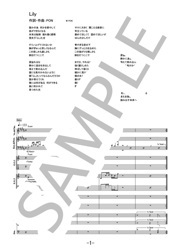 楽譜 Lily ラックライフ ギター コード譜 Joysound 楽譜 Elise