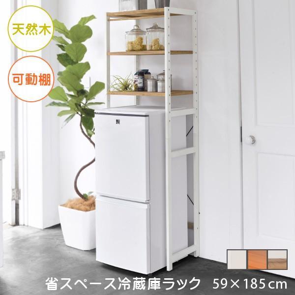 冷蔵庫 ラック おしゃれ 北欧 天然木 パイン材 高さ調節 可動棚