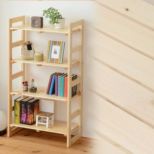 Lohaco フリーラック 薄型 収納棚 オープンラック 4段 天然木 幅78cm