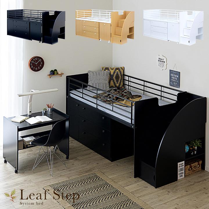 階段付き システムベッド ロフトベッド デスクベッド 学習机 デスク