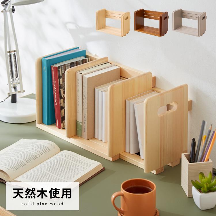ブックスタンド 本立て スライド 木製 おしゃれ 卓上 本棚 シェルフ