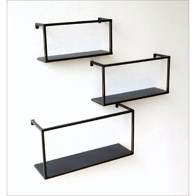 アイアンの壁掛け棚 四角枠 3段バージョン 壁掛櫃 掛牆櫃 吊櫃