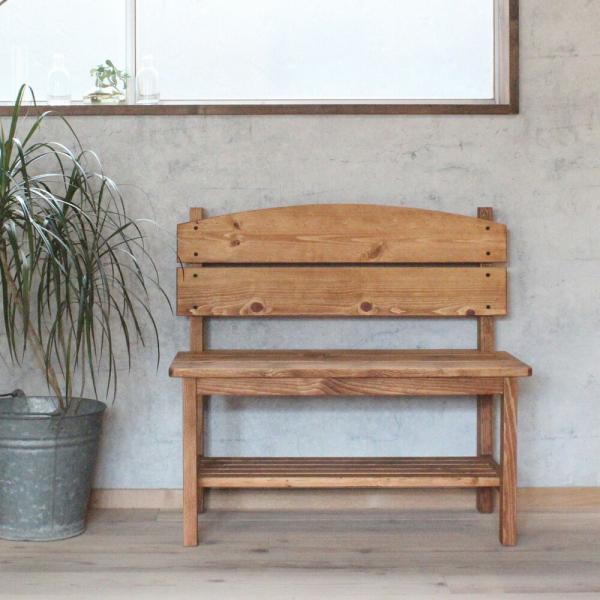 ベンチ 木製 玄関 ガーデンベンチ おしゃれ 棚板付き パイン材 全2色