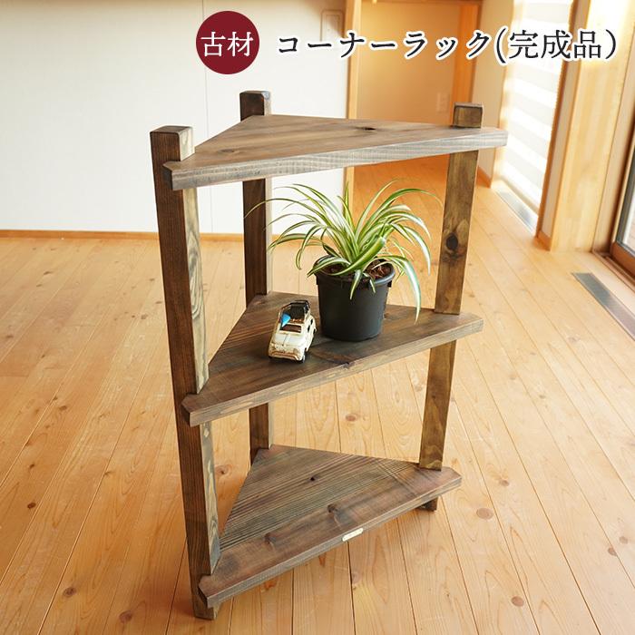 古材 棚 コーナーラック おしゃれ 木製 3段 三角コーナーラック ウッド