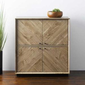 オーク 無垢材 スライドドア サイドボード キャビネット 曇りガラス 棚