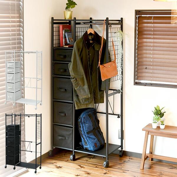 おしゃれ 5段ラック シェルフ ハンガーラック オープンラック デスク