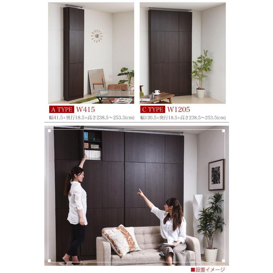 本棚 天井 つっぱり 壁面収納 薄型 扉付き 幅41 5 上置きセット E