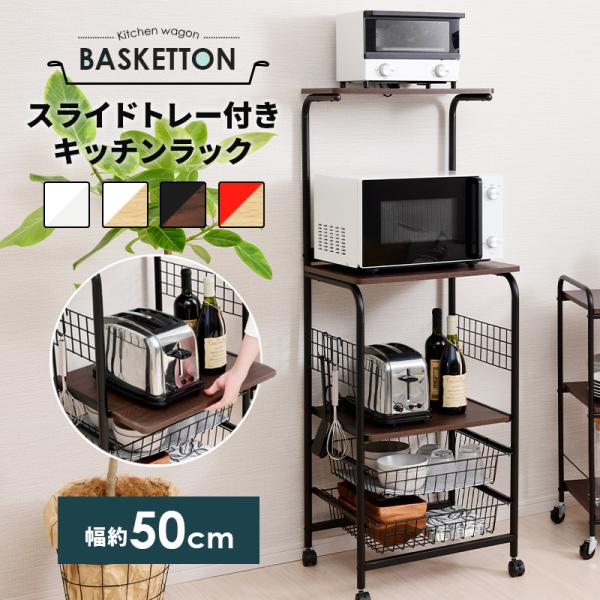 引き出しバスケットが便利 レンジ台 レンジラック 炊飯器ラック